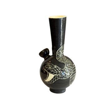Bong artesanal de cerámica en color negro, con diseño pintado de serpiente. Hecho a mano,...